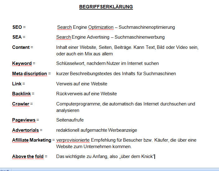 Ich habe gerade einen Artikel bei unternehmer.de gelesen, in dem es um die Geheimnisse der SEO geht. In der Definition heißt das, dass die Inhalte einer Website so gut aufbereitet sind, dass Suchmaschinen wie Google, Bing oder Yahoo diese finden, bewerten und ranken können. Denn nur gut gerankte Websites haben die Chance vom Nutzer gefunden zu werden.